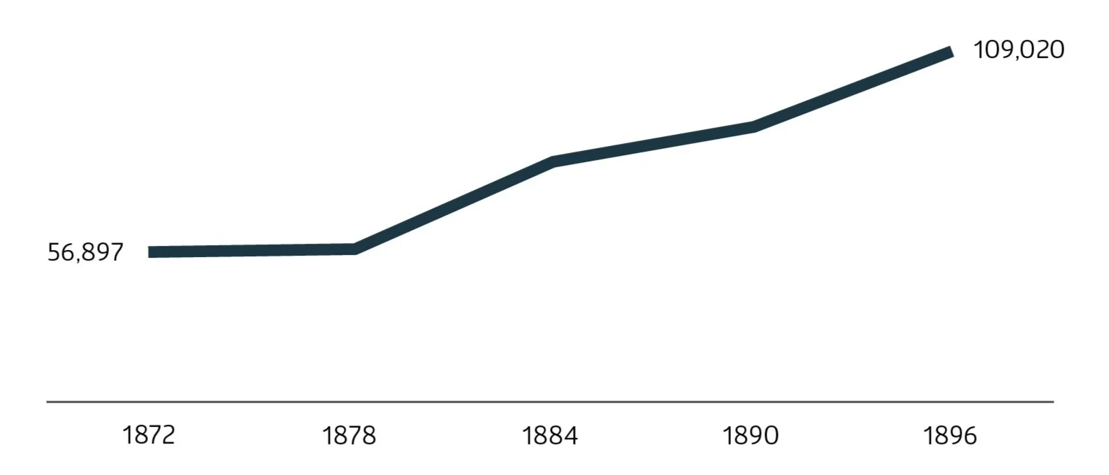 Figure 1. Hawaiʻi’s population appears to be thriving between 1872 and 1896, as its population nearly doubled over the course of just 24 years.